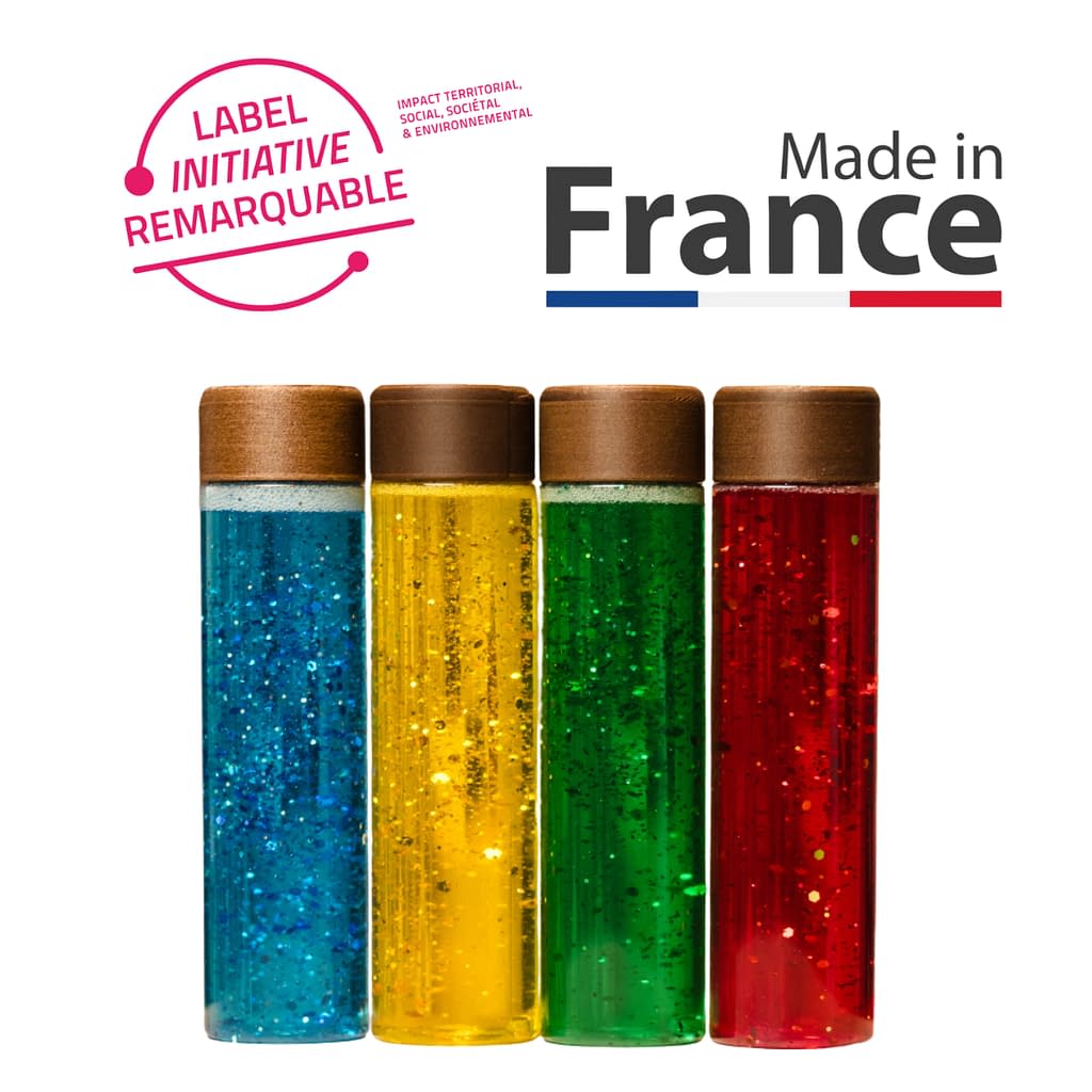 Vous êtes professionnel·le de l’éducation, collectivité ou parent engagé·e ? Optez pour des bouteilles sensorielles reconnues Label Initiatives Remarquables et I.M.F. Faites le choix d’un achat responsable, utile et fier de promouvoir le Made in France, l’innovation sociale et le développement pédagogique. Contactez-nous dès maintenant via le formulaire de contact pour établir un devis afin d’équiper votre structure.